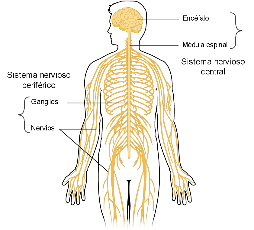 Esquema general del sistema nervioso central y sistema nervioso periférico. OpenStax.  Creative Commons Attribution-Share Alike 4.0 International. Ver Imagen en Wikimedia Comons.